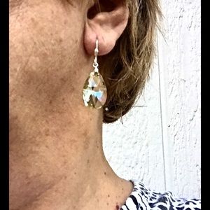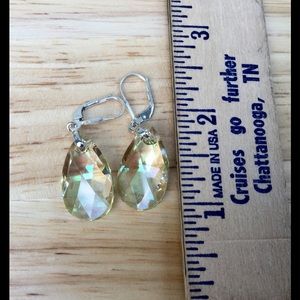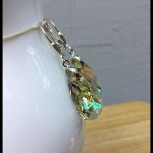 Striking Pear-shape Luminous Green Fancy Crystals by Swarovski Earrings. Sterling Silver Leverback earwire. Approx 1 1/2" long