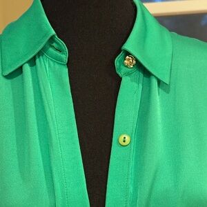 Striking shiny green viscose shirt top shirt blouse Dubai Mall brand. Size XS