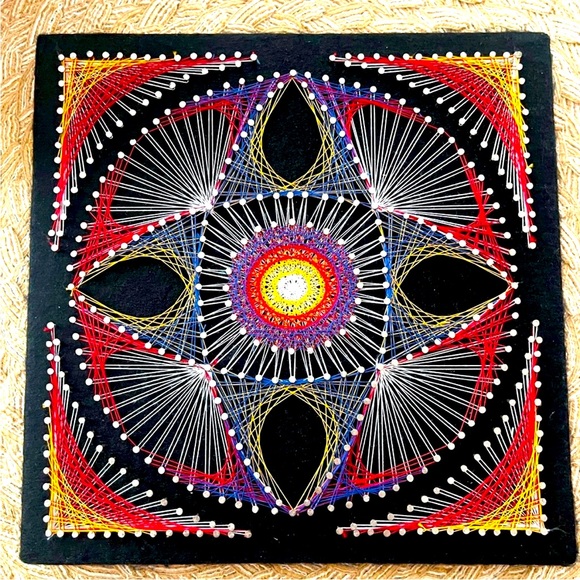 Hand crafted string/ nail decor on wood plaque w/ black felt. Made by my grandpa!