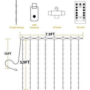 String Lights Curtain USB Powered Fairy Lights for Bedroom Wall Party 8 Modes