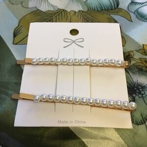 String Of Pearls Gold Metal Hair Bobby Pins - Set of 2