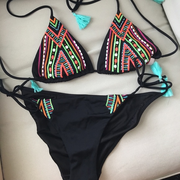 Colorful, fun, triangle string bikini! Really bright colors and super cute! Top is a large and bottom is medium but the top runs small
