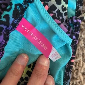 Black Leopard print, multi-color. Bottoms are full coverage.