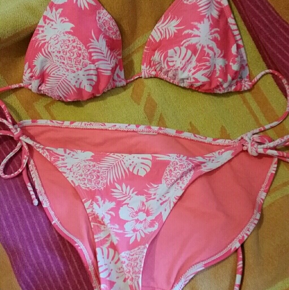 Two piece pink and white tropical bikini. About a med. Sz top and bottom.