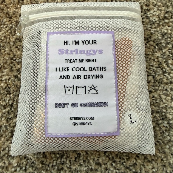 Stringys size large. Sealed, unopened. 5 total with laundry bag.