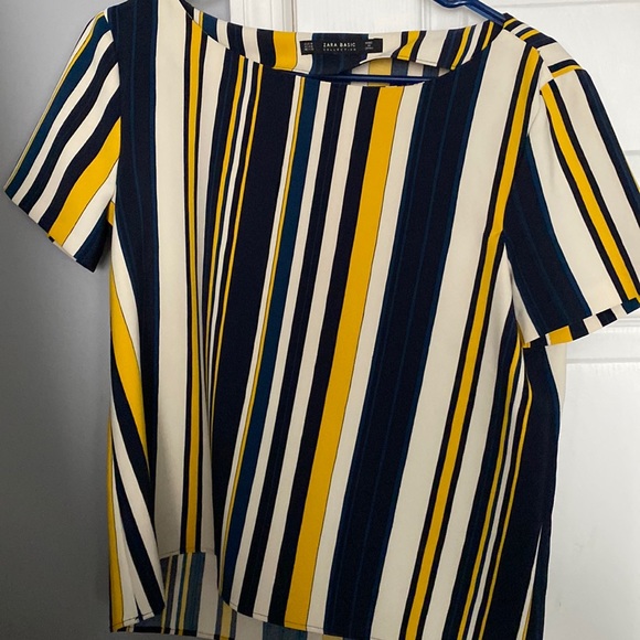 Strip blouse with blue, yellow and cream colors