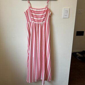 Stripe Babydoll Midi Dress In Pink Geranium Stripe