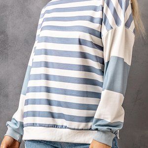 Stripe Drop Shoulder Striped Pullover Sweatshirt