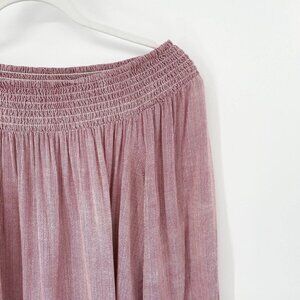 Stripe Off the Shoulder Blouse Sz M Red Smocked Bell Sleeve Tie Boho