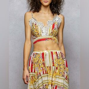 - TOP: Designed in sleeveless slim fit top in cotton with scalloped trim point, bra adjustable strap, stripe and floral pattern.