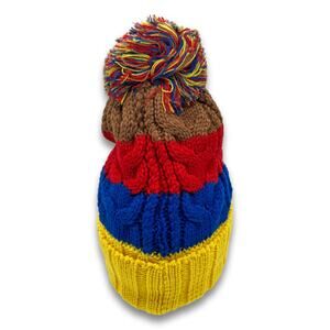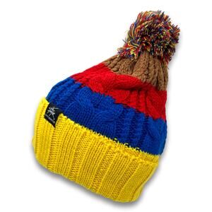 Brand New With Logo Yellow Blue Red Stripe Pattern POM Beanie Thick Warm Soft Knit Long Cuffed Ski Cap Snowboard Hat