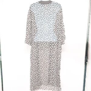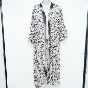 Stripe Polka Dot Print Sheer Long Open Kimono Blouse Top Duster Large XL