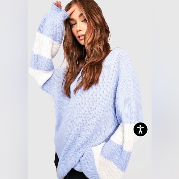 Stripe Sleeve V Neck Oversized Sweater