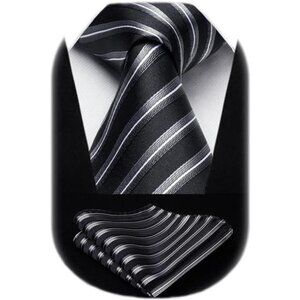 *Necktie Size : Woven Striped Tie + Matching Pocket Square + present box. Elegant Necktie: 3.4 '' × 59 '' (8.5cm × 150cm); Woven Handkerchief : 12 '' x 12 '' (31cm x 31cm); Ties and pocket squares come in well packaging and make wonderful present for birthdays and Festival.