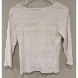 Stripe by Rayure Paris White Textured 3/4 Length Sleeves Size XS