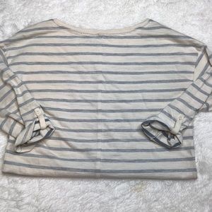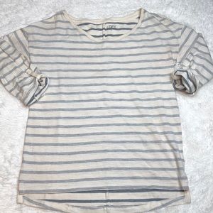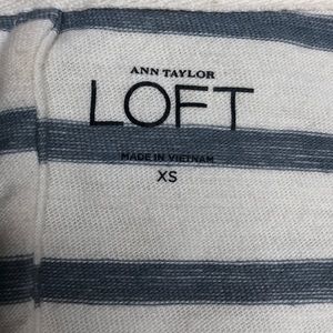 Cream with heather gray stripes, a comfy and casual top from Ann Taylor LOFT with 3/4 sleeves. Size XS, no signs of wear and tear. From a smoke free home.