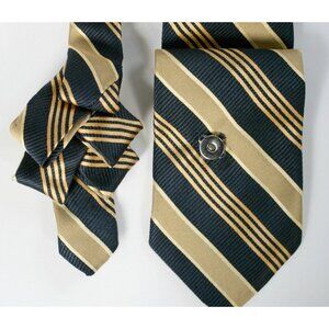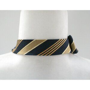 Our men's striped, silk, ascot tie, is the perfect amount of fabulous for any gentleman's wardrobe. Made from a recycled navy and gold tie, this takes the conventional ascot and takes it up so many notches. We're talking bold, fun and fearless style that can be dressed up so many ways whether it's with a suit or jeans and a t-shirt.