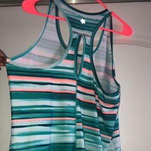 TekGear striped racerback tank with moisture wicking to keep dry and comfortable.