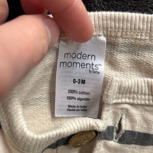 Set of two striped baby rompers. Features button details. Perfect for casual wear. Brands Old Navy and Modern Moments by Gerber