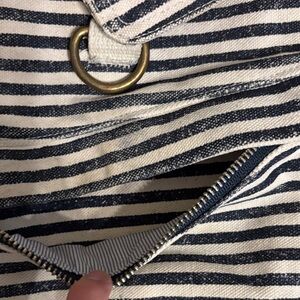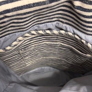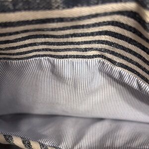 Stylish striped backpack by . Perfect for everyday use with a chic black and white design.