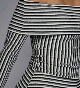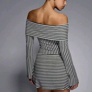 Striped Bardot Long Sleeve Mini Dress With Flippy Hem