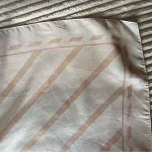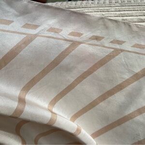 Elegant scarf with beige and white stripes. Perfect for any occasion.