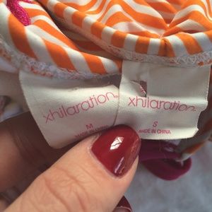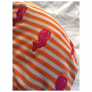 I bought this cute bikini from target! It's orange stripes with very cute whale detailing! It's in great shape! The bottom is a small and the top is a medium but I would say it could fit a small too!
