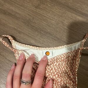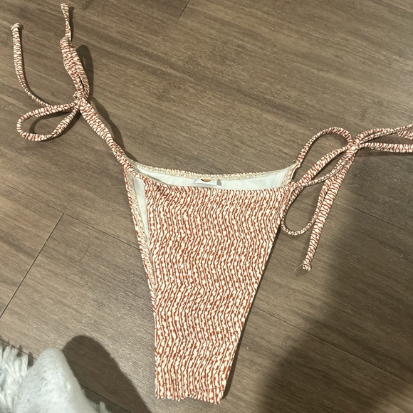 Stylish striped bikini bottom perfect for a day at the beach. Features a comfortable fit with adjustable ties.