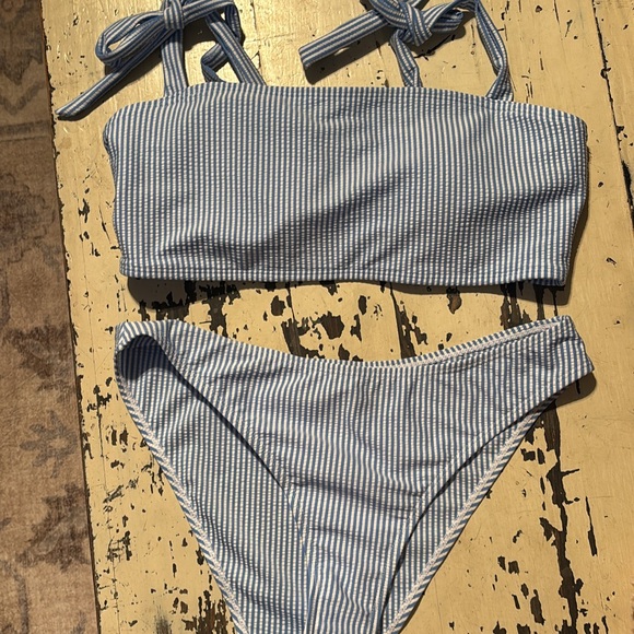 Stylish striped bikini set with tie straps. Perfect for the beach. NWOT