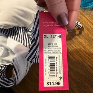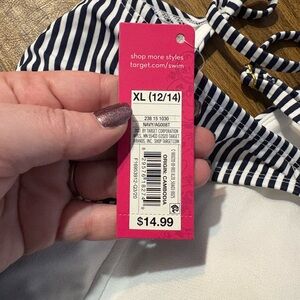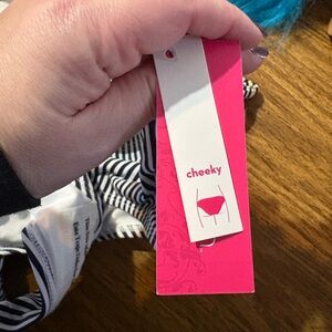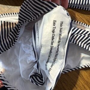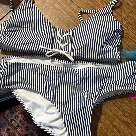 Stylish black and white striped bikini set. Features a lace-up front detail. Brand new Bikini XL. Open to reasonable offers, especially if bundling with other items I have listed!