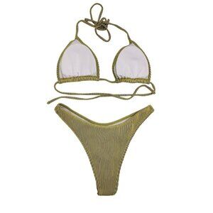 Striped Bikini Set With Triangle Swimsuit Top & Skirt Cover-Up Size M