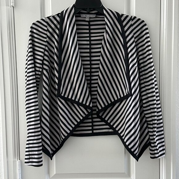 Striped Black & Gray Open Front Cardigan Blazer S Ny Collection