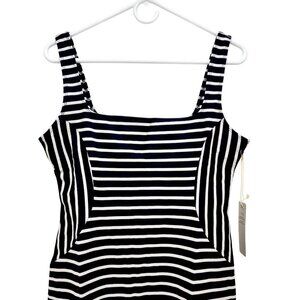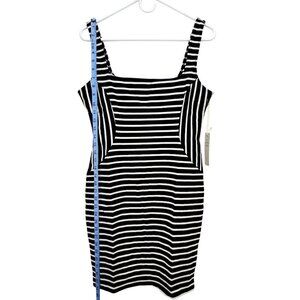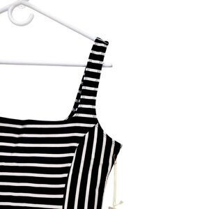 Striped Black & White Bodycon Dress - Square Neckline Sleeveless Stretchy Size L