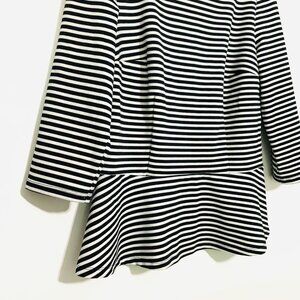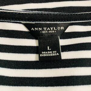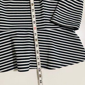 Striped Black & White Long-Sleeve Peplum Top By Ann Taylor Size Large