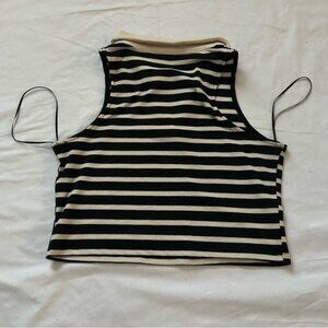 Stylish tank top with black and cream stripes. Great for day outings in warm weather.