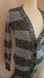 Stay cozy and stylish with this striped black and gray women's sweater. Perfect for any casual outing.