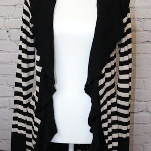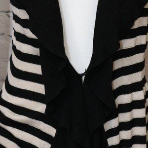 This classy chic cardigan is the essential that will work with everything in your closet! Size medium and in fantastic shape. There is small gold threading throughout to add just a subtle touch of glam. Don't hesitate to reach out with any questions.