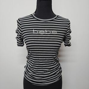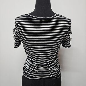 Striped Black and White Top with BEBE Embellishments Size Medium