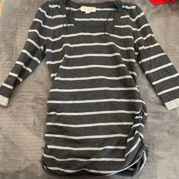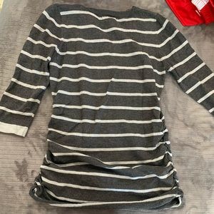Soft striped blouse with 3/4 sleeve. Cinching at the bottom.