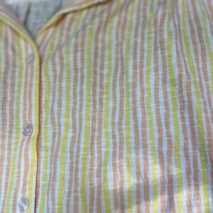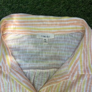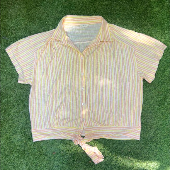 Stylish blouse with a tie-front design. Button up with orange, yellow, and white stripes. NWOT