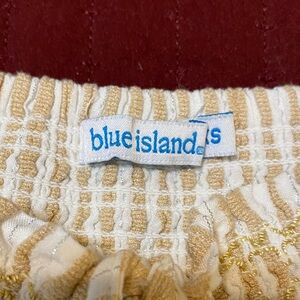 Striped Blue Island Strapless Swimsuit Coverup or Top with Ruffle Hem XS