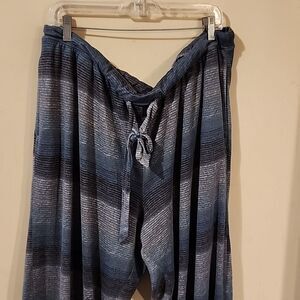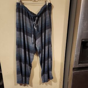 Comfortable lounge pants with a drawstring waist. Features a stylish striped pattern. pockets