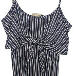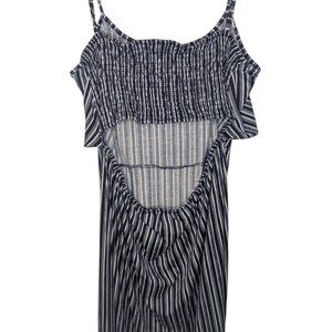 Striped Blue & White Long Maxi Dress w/Thigh Slit, Bow and Cut-Out - Size XL