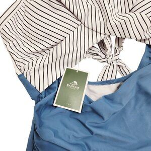 Striped Blue & White One-Piece Swimsuit Womens With Tie-Back Size XL