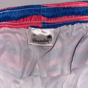 Dive into style with these vibrant striped swim trunks. Featuring a bold blue and pink design, these trunks are perfect for making a splash at the beach or pool.