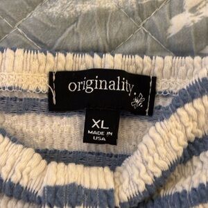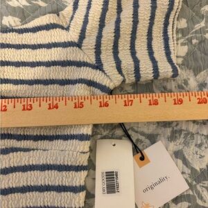 Elevate your style with this chic off-shoulder blouse. Featuring classic blue and white stripes, it's perfect for any casual occasion.