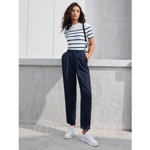 Striped Blue on White Slim Short Sleeve Tee Shirt High Neck