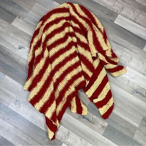 Striped Boucle Knit Afghan Blanket Red Beige Boho 58 x 58