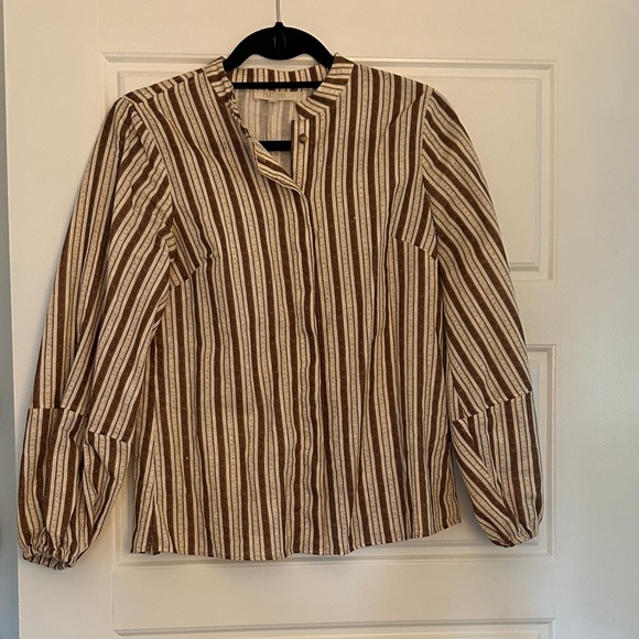 Parterre blouse with brown and white stripes. Perfect for casual or formal wear. Button down. 00 fits like a 2. Worn once!