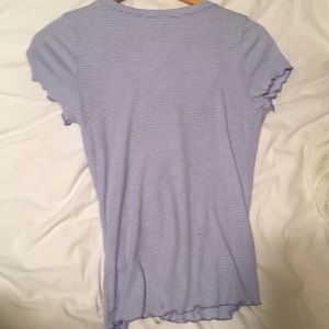 Slightly ruffled, slightly striped, slightly (very) comfortable scoop necked Tee. Love love love
